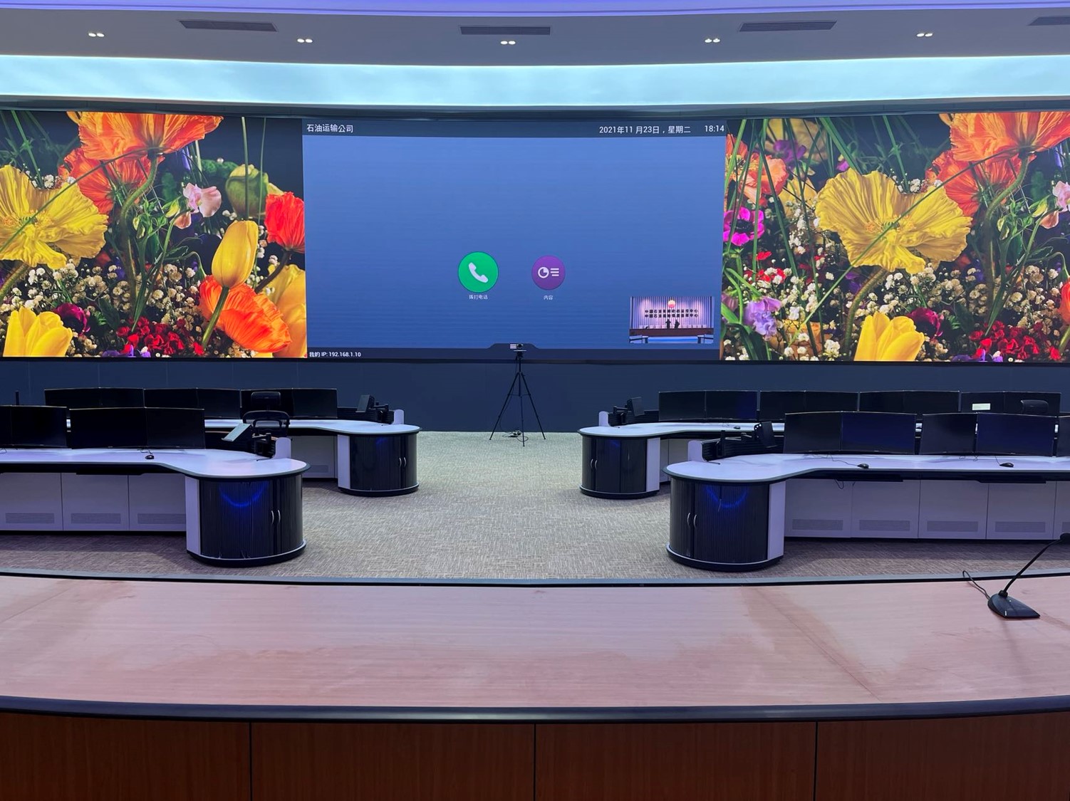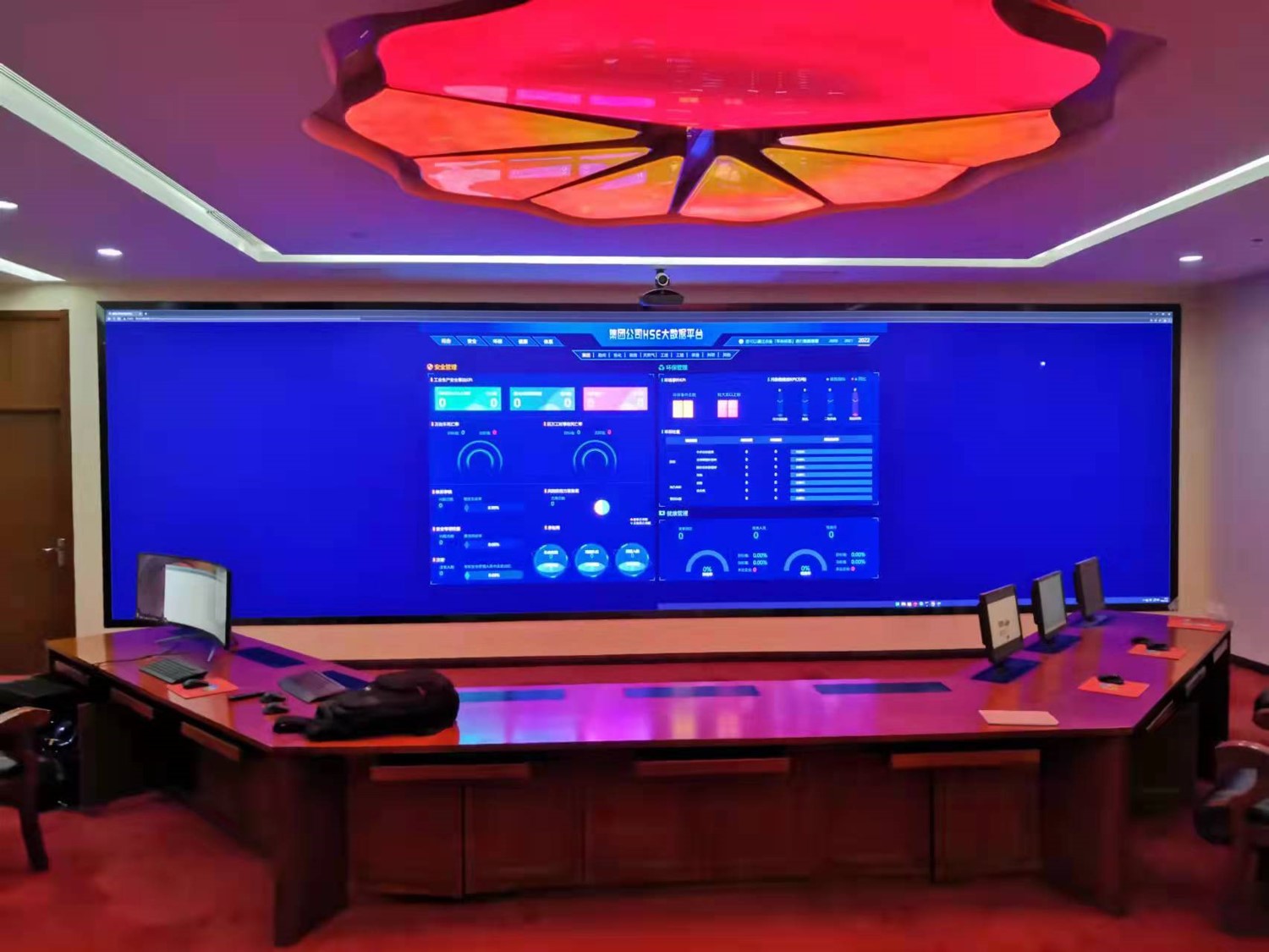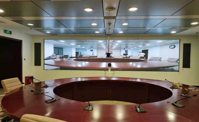 中國石油集團安全環保技術研究院1層視頻會議室創新型的運用0.93mmLED顯示屏,不僅滿足單位召開視頻會議室使用,同時可用于超高分圖像的展示工具,對研究院研發團隊成果展示、實驗過程分析提供保障。同時對現有視頻會議功能進行升級,由原來模擬、標清視頻會議形式升級為高清、4K會議,